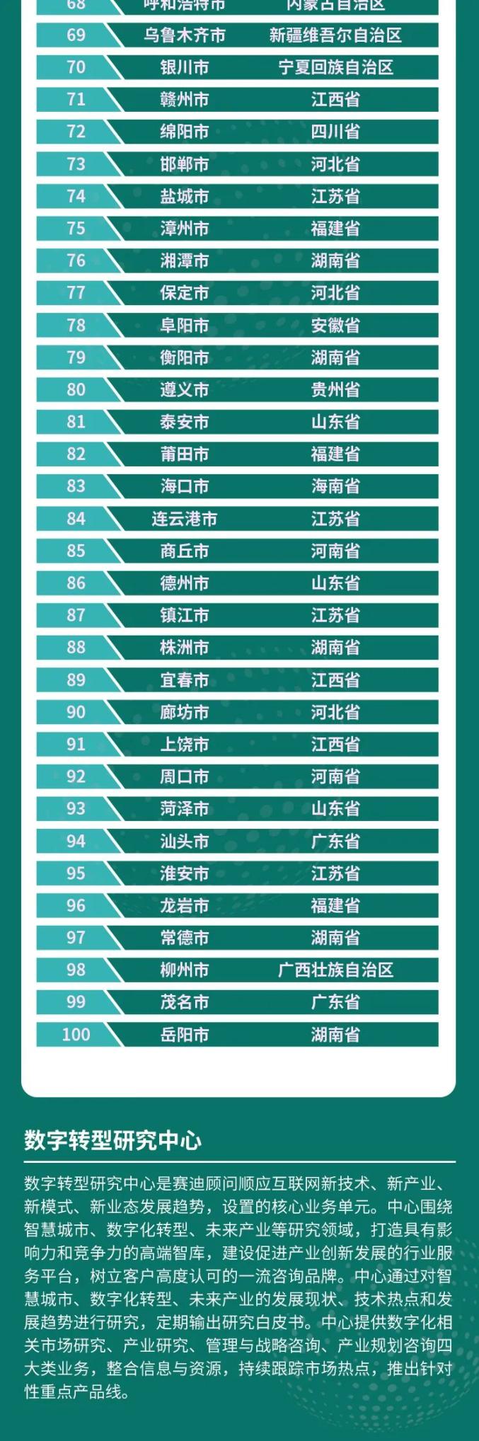 11月19日,第一屆中國(guó)新型智慧城市建設(shè)峰會(huì)在青島國(guó)際會(huì)議中心開幕,峰會(huì)上發(fā)布了《2021年中國(guó)城市數(shù)字化轉(zhuǎn)型競(jìng)爭(zhēng)力》評(píng)估結(jié)果,公布了“2021數(shù)字化轉(zhuǎn)型百?gòu)?qiáng)城市名單”。權(quán)威機(jī)構(gòu)賽迪顧問通過調(diào)取數(shù)據(jù)、