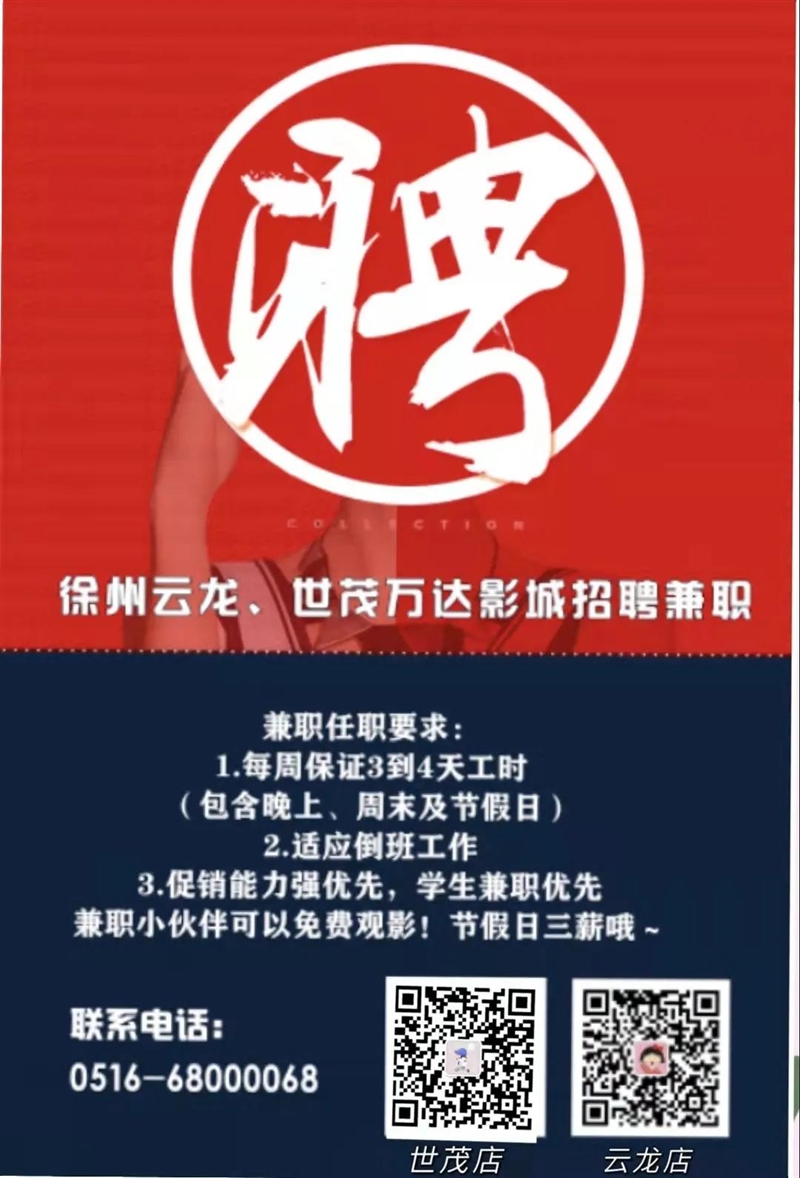 徐州云龍 世貿(mào)萬達影城招聘兼職